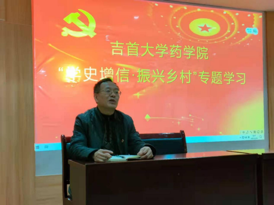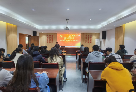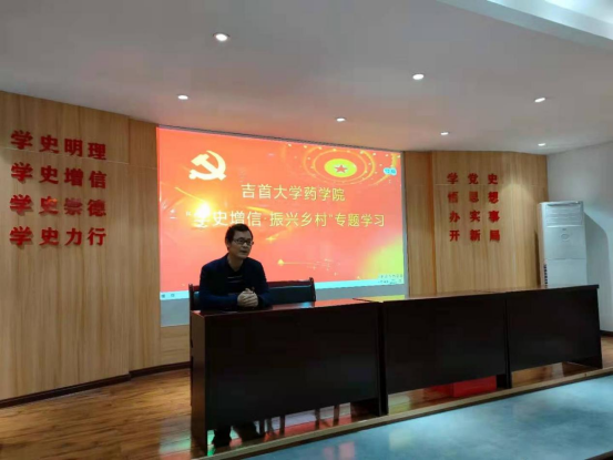 图为 师生党员在十八洞村报告厅开展“学史增信·振兴乡村”专题学习