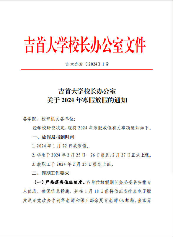 关于2024年寒假放假的通知