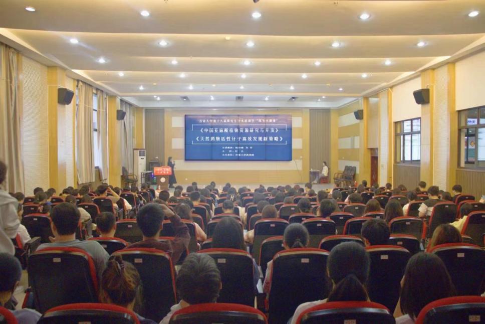 本网讯(通讯员 江心迪)为了激发同学们对知识的探索热情,提升学术素养,在全国第八个科技工作者日之际,5月30日19点,伟德BETVLCTOR1946“药学讲坛”第二十一期、“伟德国际BETVlCTOR1946第十六届研究生学术活动节”主题论坛系列活动之—,“天然药用植物资源研究与开发”学术报告会于大田湾校区2609学术报告厅举行。本次报告会主讲嘉宾为伟德BETVLCTOR1946经理陈功锡教授和刘芬博士,报告主题分别为《中国亚麻酸植物资源研究与开发》和《天然活性分子高效发现新策略》,会议由叶凡博士主持。参会人员涵盖了伟德BETVLCTOR1946部分教师、研究生以及21至23级本科生共200余人。