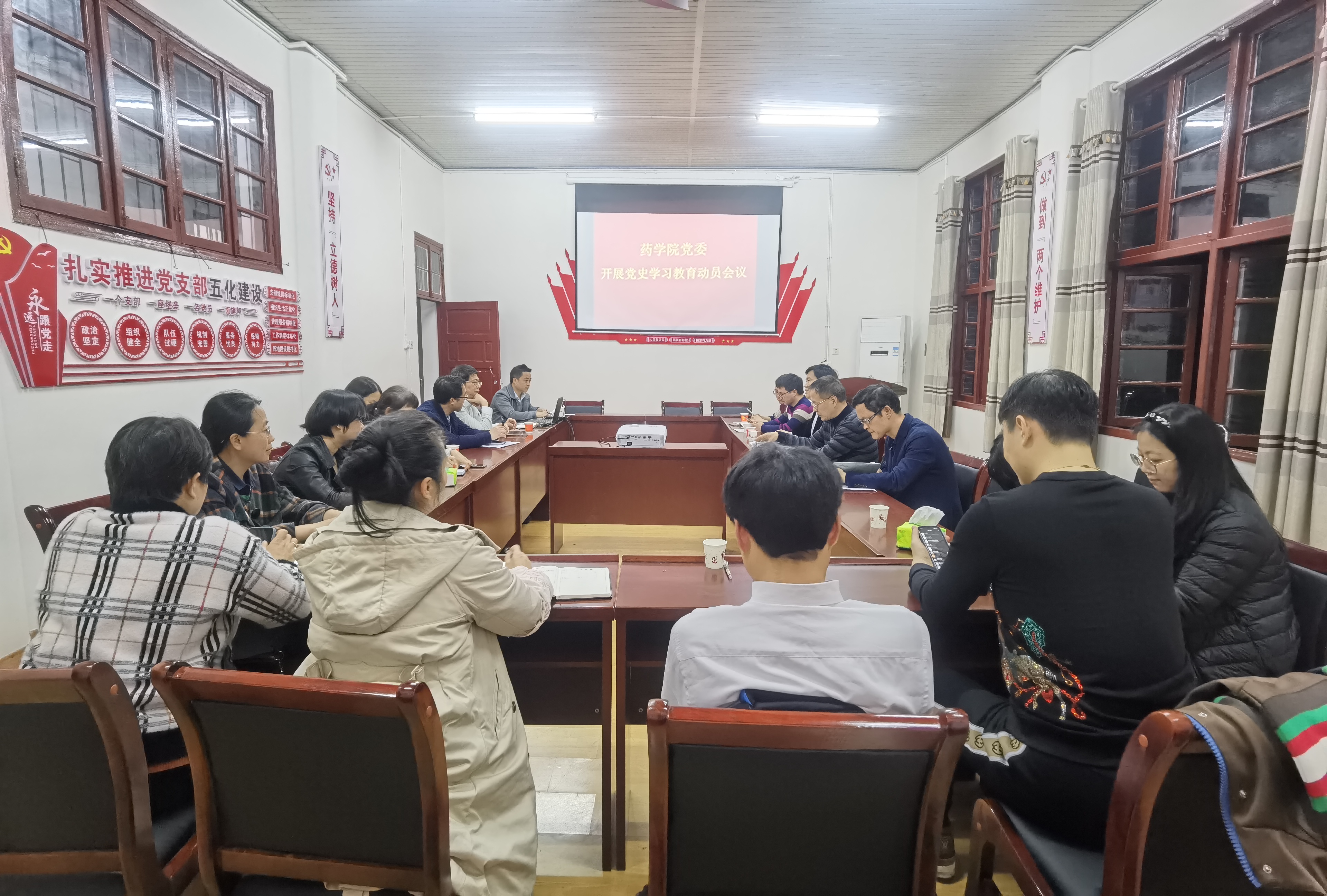 他向大家阐述了党史学习教育的时代背景、重要意义、具体要求。学院将结合中心工作学以致用,将党史学习教育内化为巩固深化“不忘初心、牢记使命”主题教育成果,提升基层党组织政治功能和组织力,教育引导广大党员增强“四个意识”、坚定“四个自信”、做到“两个维护”,为党和人民事业不懈奋斗的力量。他号召教师党员扎实学深悟透党史学习教育精神,将党的荣光、精神和学院发展任务结合起来,力求达到学史明理、学史增信、学史崇德、学史力行的效果。