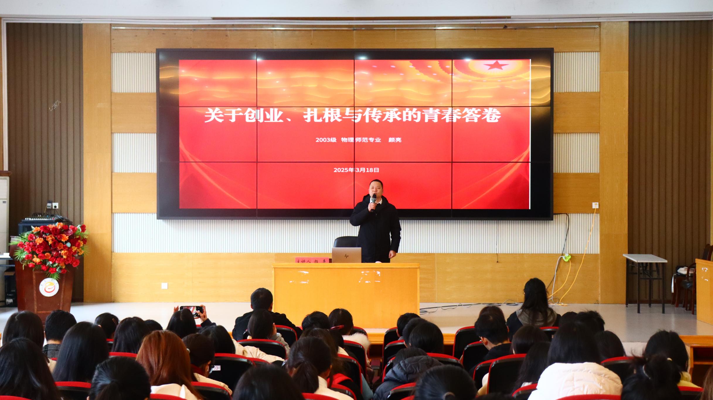 颜亮首先感谢了母校给予自己的培育之情。他结合自己的老员工活及毕业后的人生逐梦历程,希望同学们一定要珍惜大学这个关键阶段,要勤奋学习,刻苦钻研,努力奋斗,认真规划好自己的老员工活。他强调要深入生活,感悟生活,善于发现生活中的痛点,适时预判未来科学技术的发展方向,同时善于发现商机,才能萌芽出创业的点子和想法。谈及创业历程,他回溯了自己2005年起的互联网创业探索,借网易等平台变迁展现行业变革,鼓励同学们抓趋势、勇创新。同时,借硅谷银行破产案例,他强调无论学习还是创业,都要坚守“初心”。此外,他结合学院的专业特色,为同学们剖析了三大产业的创业特点并结合实例来助力同学们明确学习和赋能的方向,还分享了自己在相关生活领域的创业成果,激励同学们积极参与活动、全面提升能力。