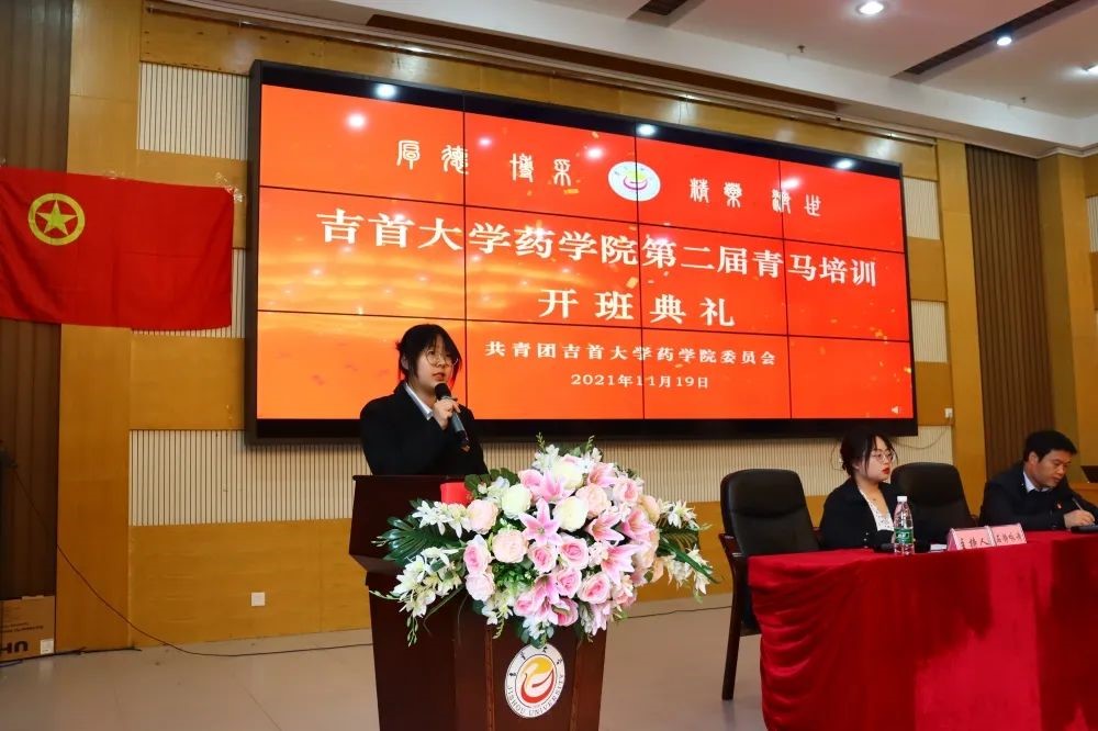 青马培训开班典礼在庄严的国歌声中拉开帷幕。青马培训学员代表谭睿泂发言,阐述开办青马培训班的目的及宗旨,代表广大学员作出了“努力学习、提高认识、端正态度、勤于实践”的保证,鼓励大家珍惜青马培训的机会,力争学有所思、学有所悟、学有所得、学有所获,扎实地完成青马培训班的学习。