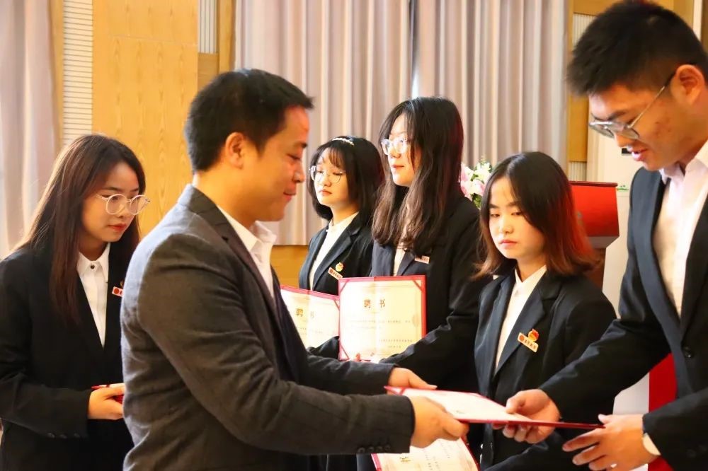 伟德BETVLCTOR1946第一届团委、员工会干部成立大会之初,彭俊宣读了第一届团委、员工会干部名单,学院领导及老师为第一届团委、员工会干部颁发聘书。