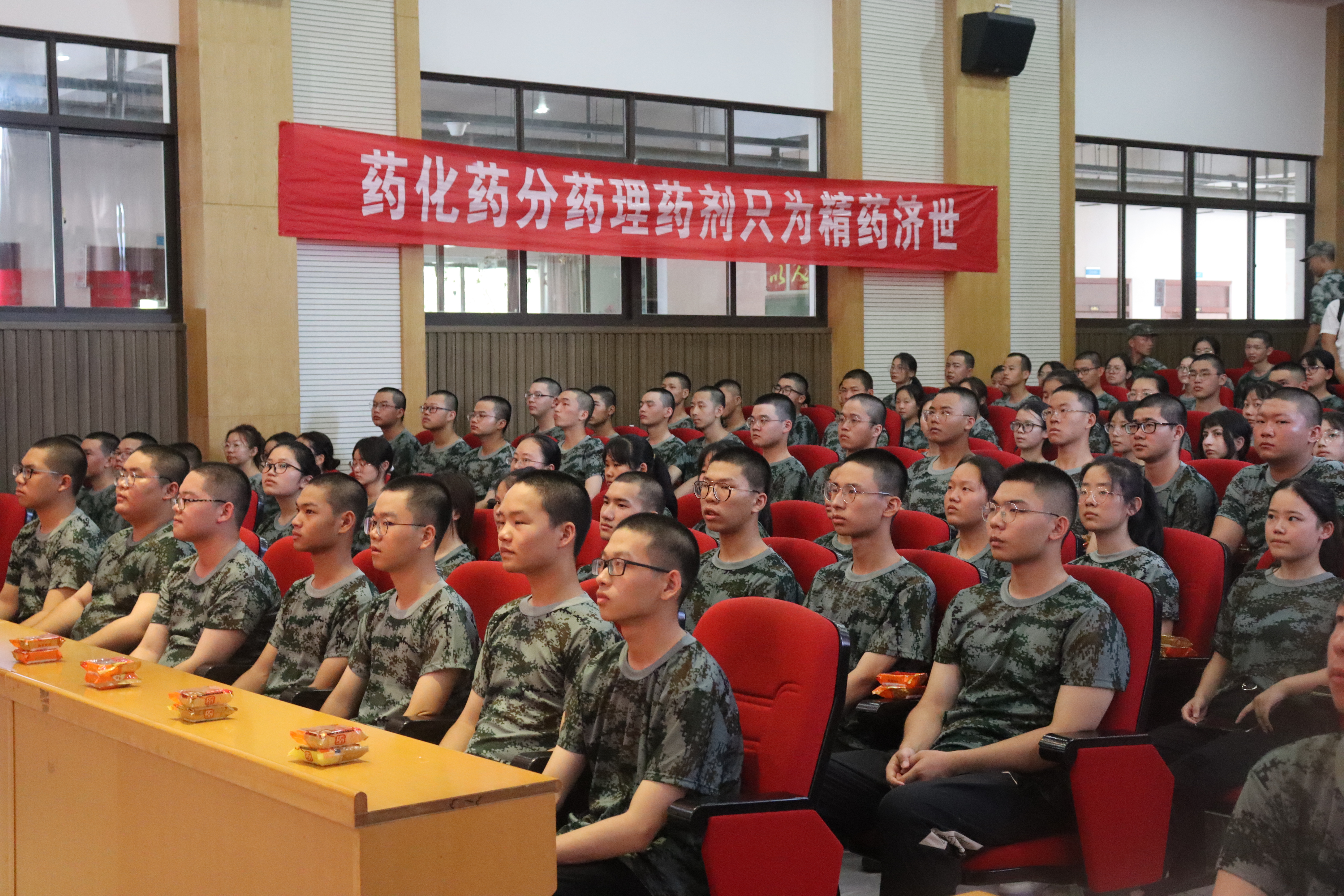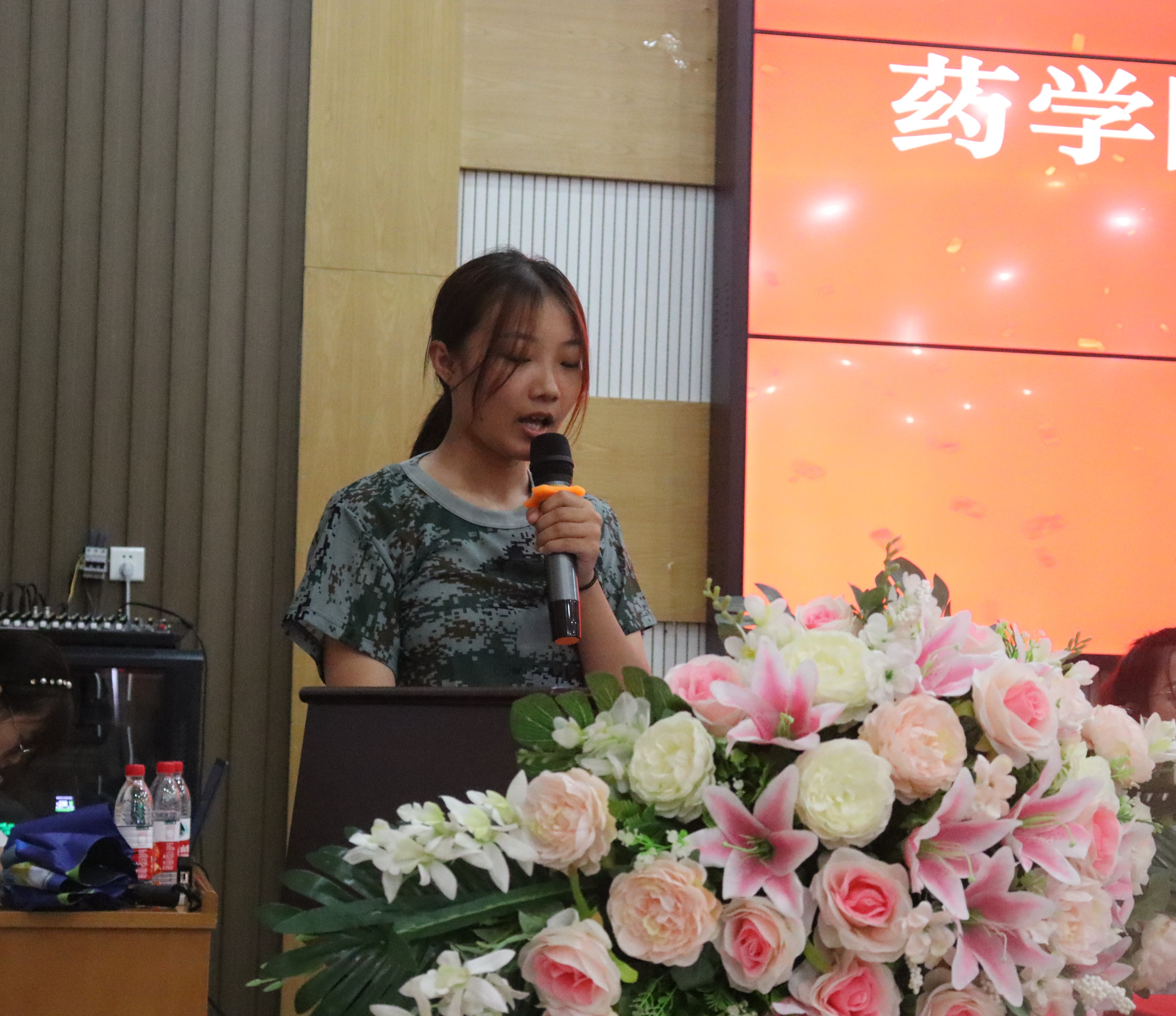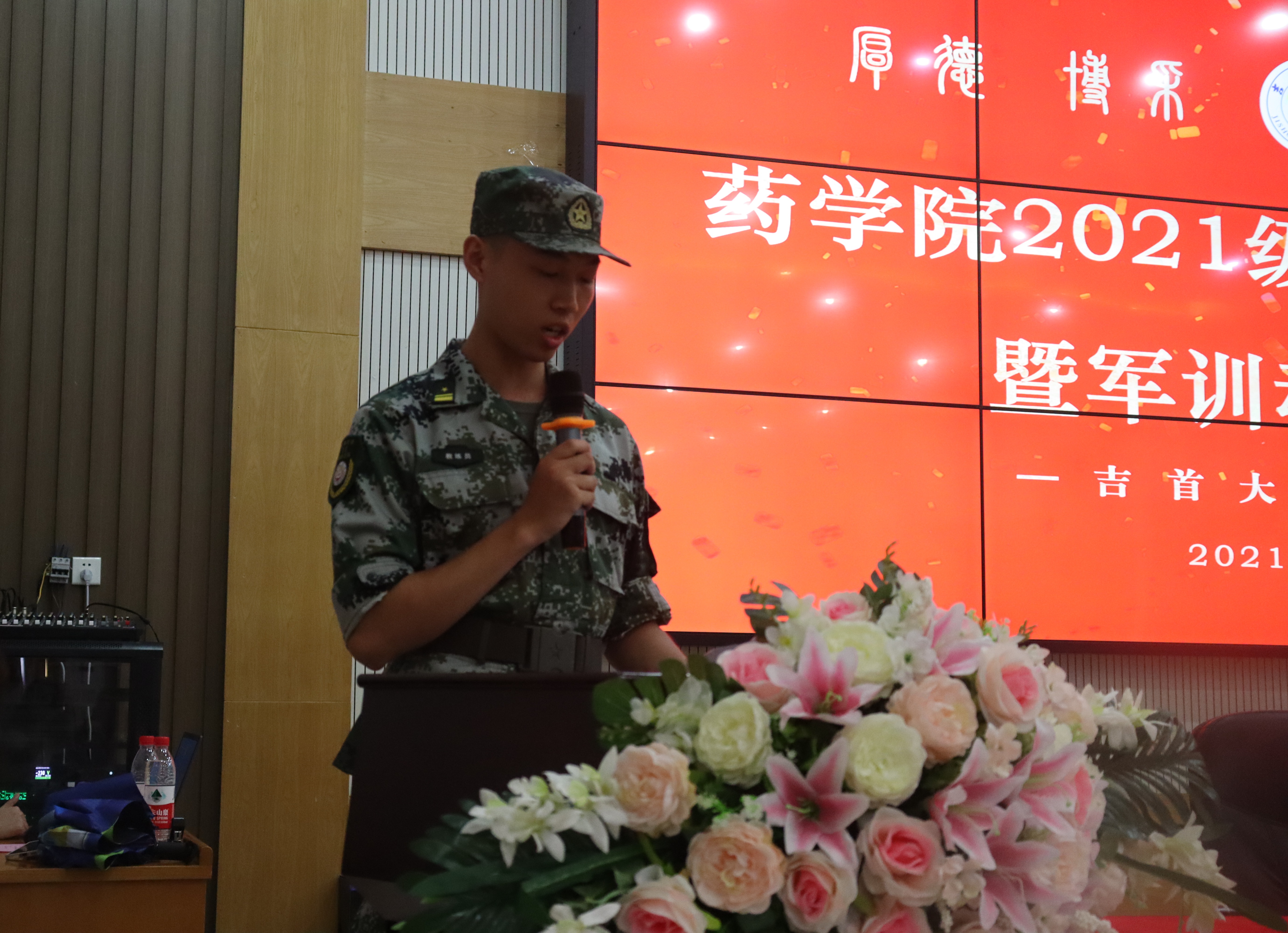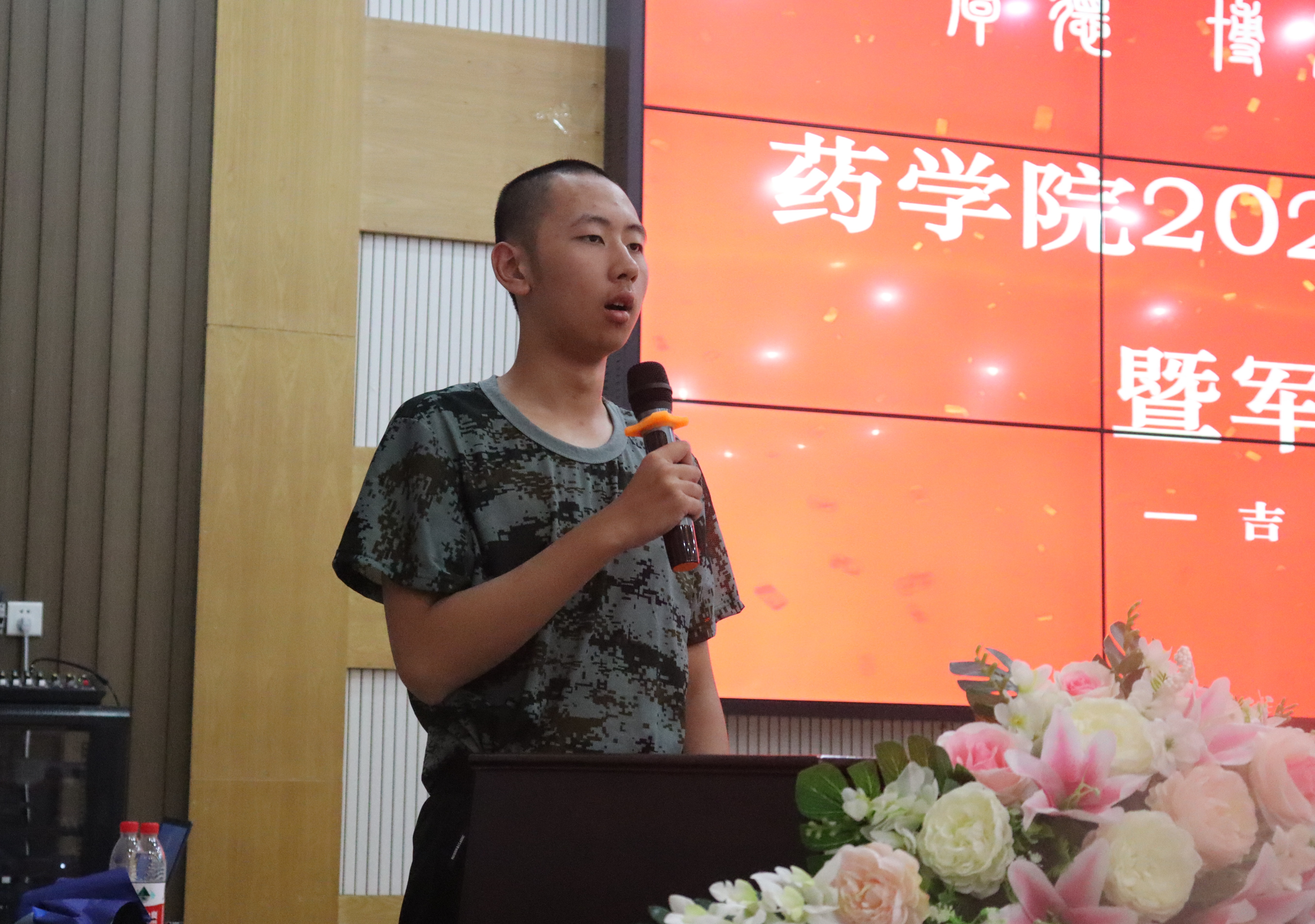 学员代表药学1班陈嘉旺发言,代表全体学员表态:一是服从命令、听从指挥;二是刻苦训练、磨炼意志;三是团结协作、荣辱与共;四是养成习惯、持之以恒。