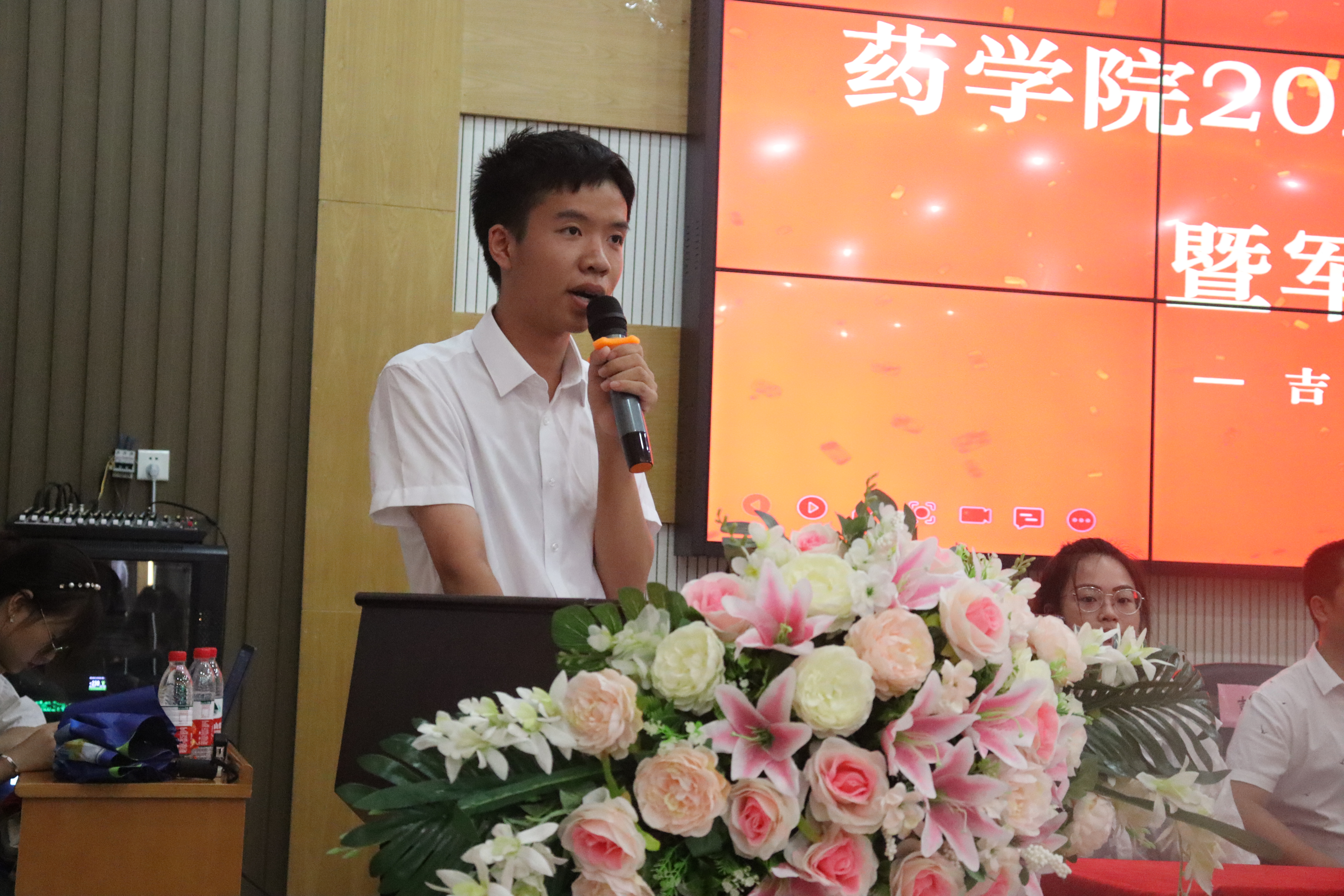 老生代表,全国制药工程设计大赛二等奖获得者、松桂坊成才试验奖学金获得者,2019级制药工程班匡勇斌同学发言,介绍了自己的成长历程、取得的成就,分享自己的成长经验、学习方法,为新同学指明大学学习的方向。