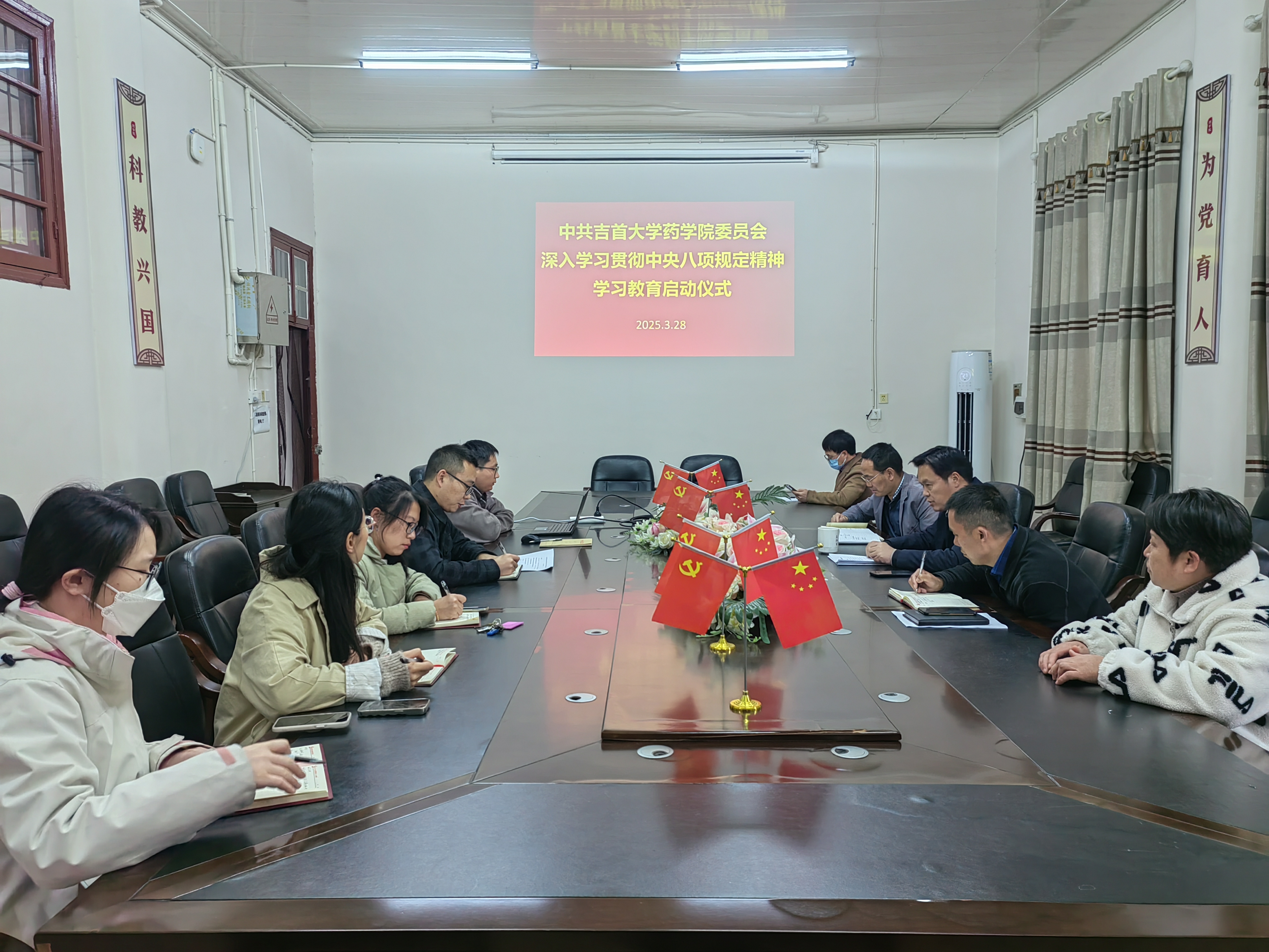 王江生传达了学校会议精神,带领大家学习了学校和学院关于深入贯彻中央八项规定精神学习教育的实施方案,传达了学校领导讲话精神。对学院如何开展学习教育做了工作安排,他强调一是要提高政治站位,深刻领会学习教育的重大意义。深刻领会开展学习教育是巩固拓展主题教育和党纪学习教育成果,纵深推进全面从严治党的重要举措;深刻领会开展学习教育是密切党群干群关系,巩固党的长期执政根基的必然要求;深刻领会开展学习教育是推进中国式现代化的有力保障。二是要把握目标,结合实际,推动学习教育走深走实。要把准总体要求,做到“四个聚焦”;要聚焦重点环节,一体推进学、查、改;要突出问题导向,坚持当下改与长久立相结合。三是要压实压紧责任,高标准完成学习教育各项任务。中心组、各支部要按计划高质量推进,结合工作加以运用,产生效果。