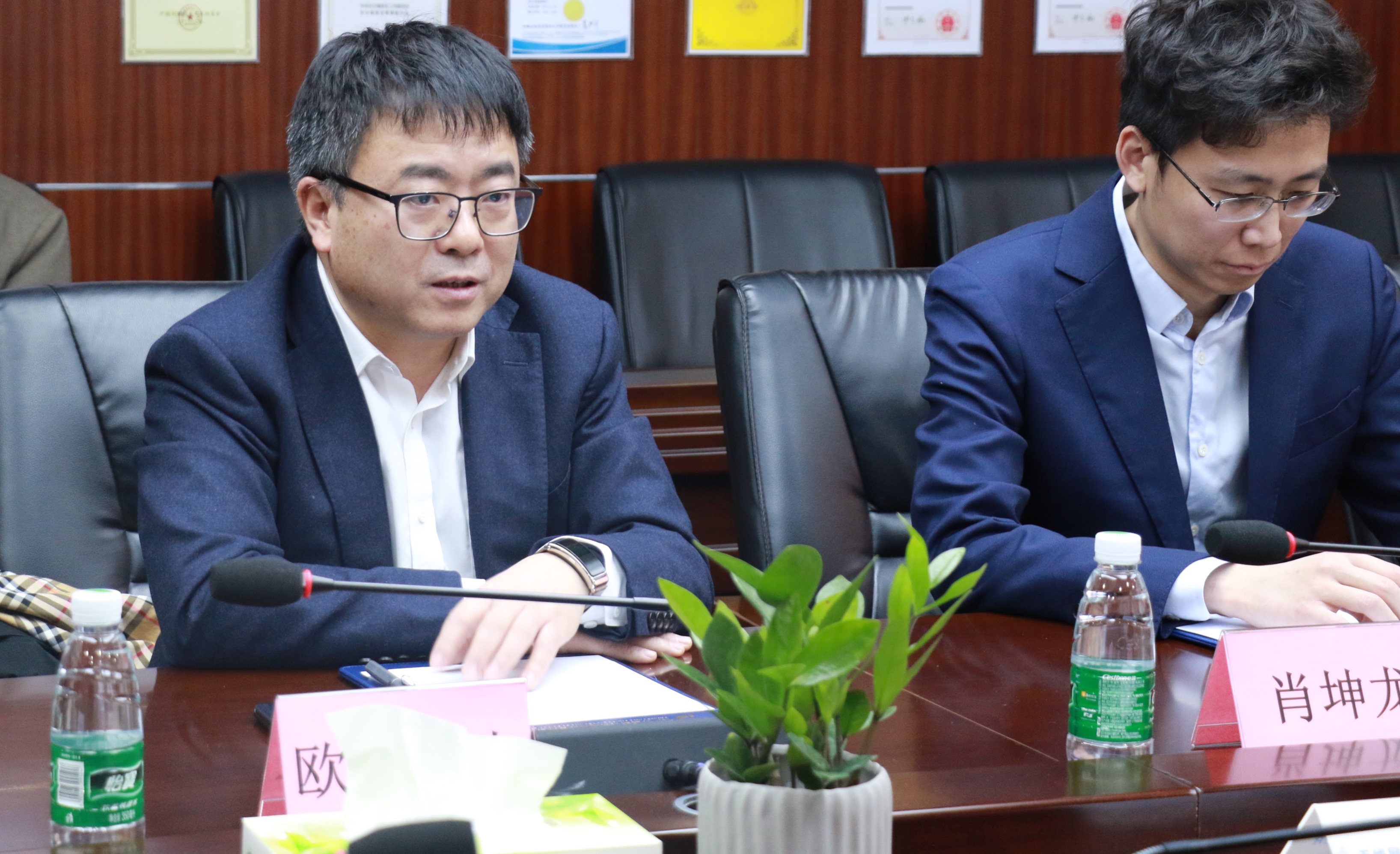 图为欧阳冬生董事长出席签约仪式以及与学院领导座谈