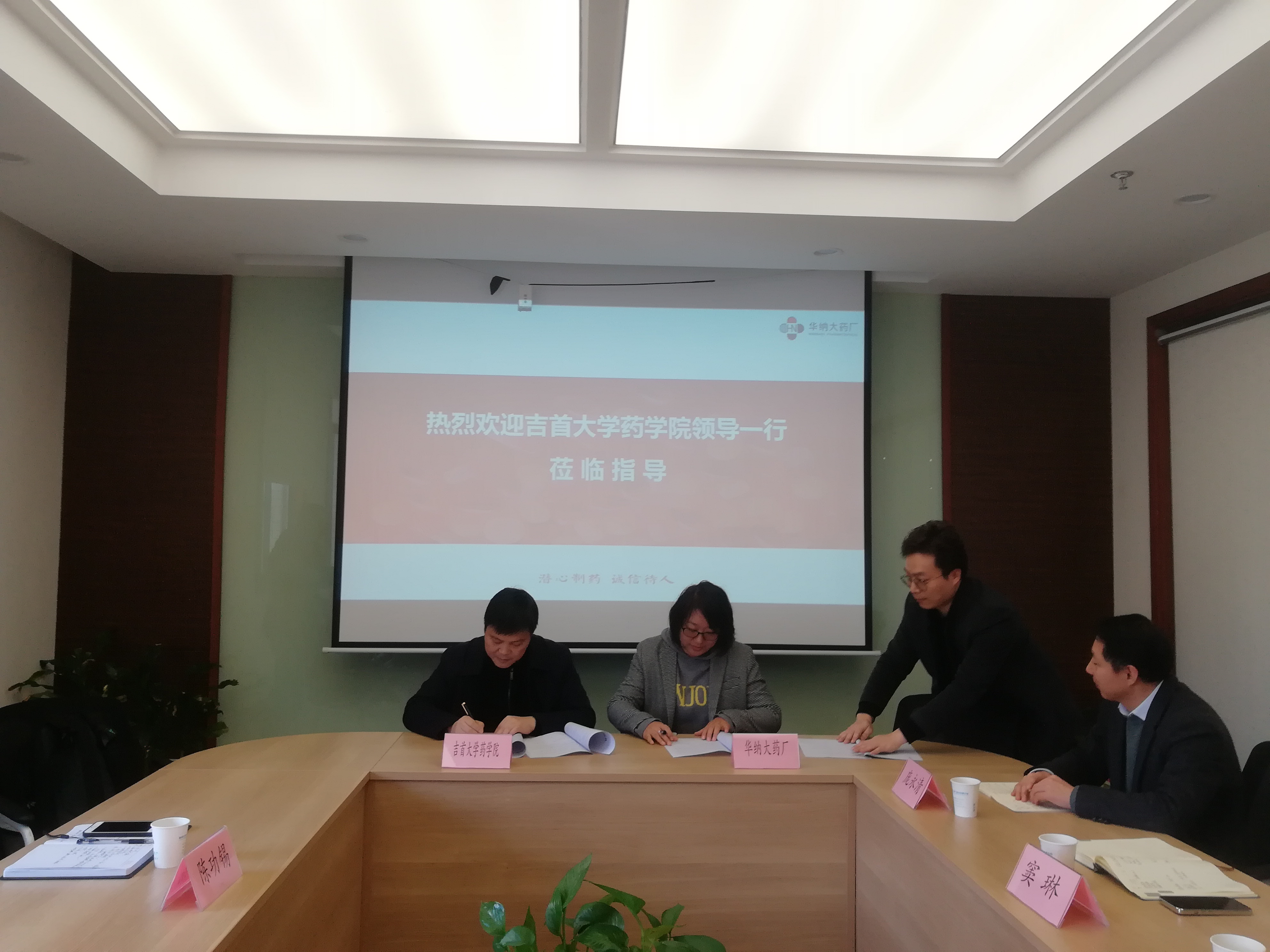 华纳大药厂有限公司是一家以高端化药、中药为主集药品研发、生产、销售于一体的高科技公司,以肠胃类、心血管类、抗感染类药品生产见长,并于2021年成功上市。公司董事长黄本东先生热情接待了学院领导。双方在会议室进行了座谈,王江生代表学院与公司副董事长窦琳签订了合作协议。