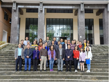 图为 肇庆市卫生健康局一行与学校老师在医药大楼前合影