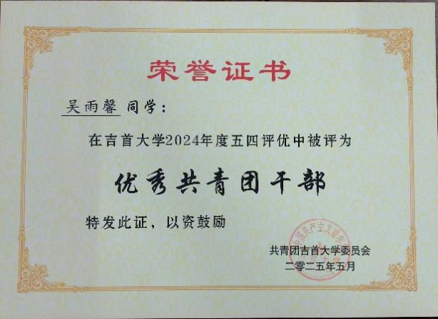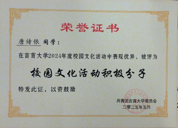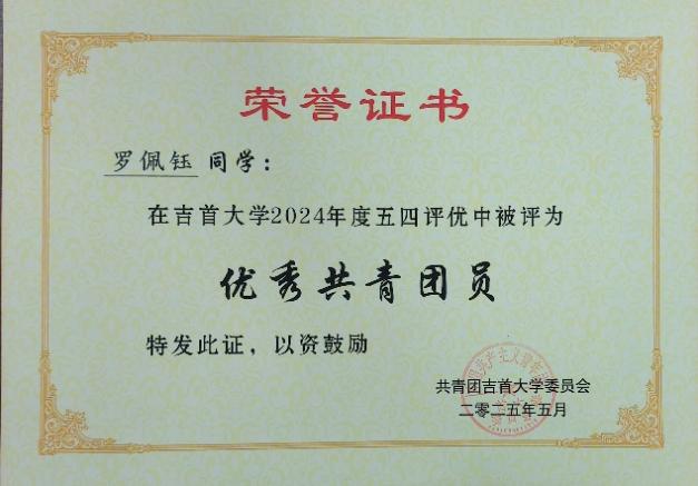图为 活力团支部荣誉证书
