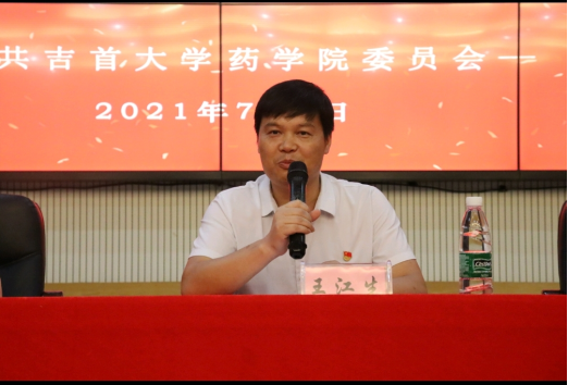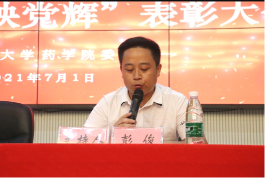 会议在庄严的国歌声中拉开序幕。王江生带领学院新发展的预备党员进行入党宣誓仪式,老党员重温入党誓词。李先辉宣读《中国共产党伟德BETVLCTOR1946委员会关于庆祝建党100周年"争先创优映党辉"活动的表彰决定》。学院表彰了一批品学兼优、全面发展、积极实践、为学院建设发展做出突出贡献的优秀员工党员、优秀共青团员、学习标兵、优秀员工干部、优秀员工记者。表彰了学院“学百年党史 讲医药故事”大赛的获奖团队、优秀组织班级。还表彰了在学院院徽、院训征集活动中获奖的个人。