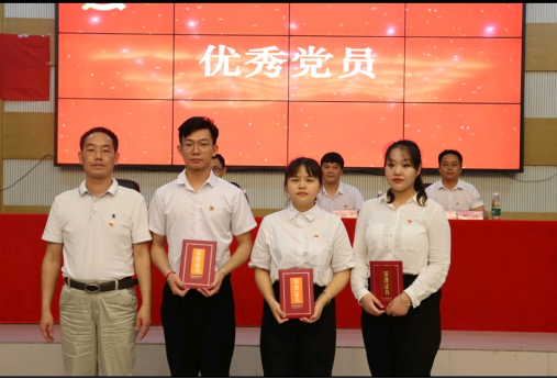 7月1日晚上,伟德BETVLCTOR1946庆祝建党100周年"争先创优映辉"表彰大会在第二教学楼2609多功能报告厅举行,公司党委副书记王江生、副经理李先辉、副经理张朝晖、学工办主任彭俊、全体员工党员以及团员代表参加会议。会议由彭俊主持。