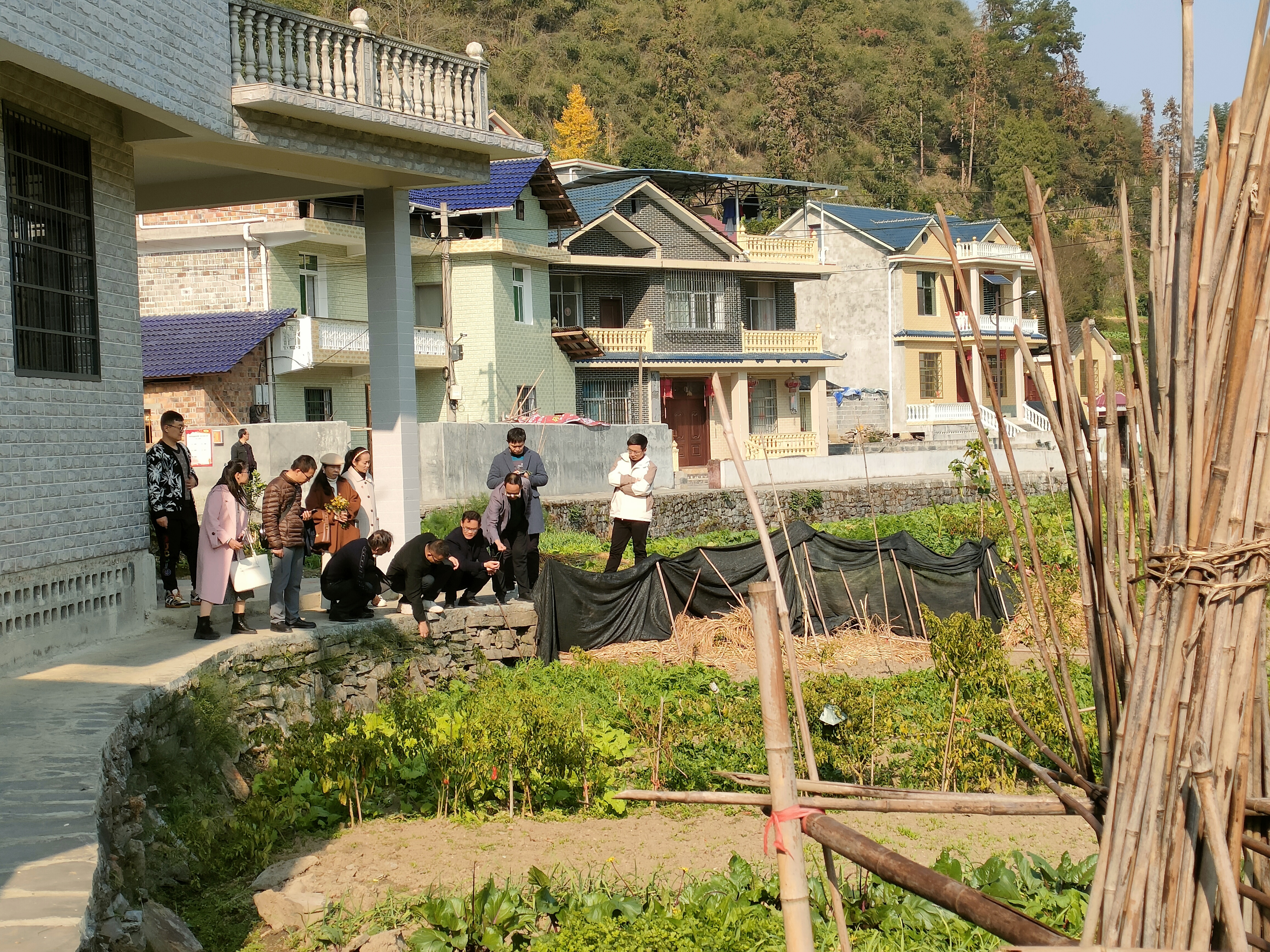 图为 教师党员们深入勤丰村考察调研。