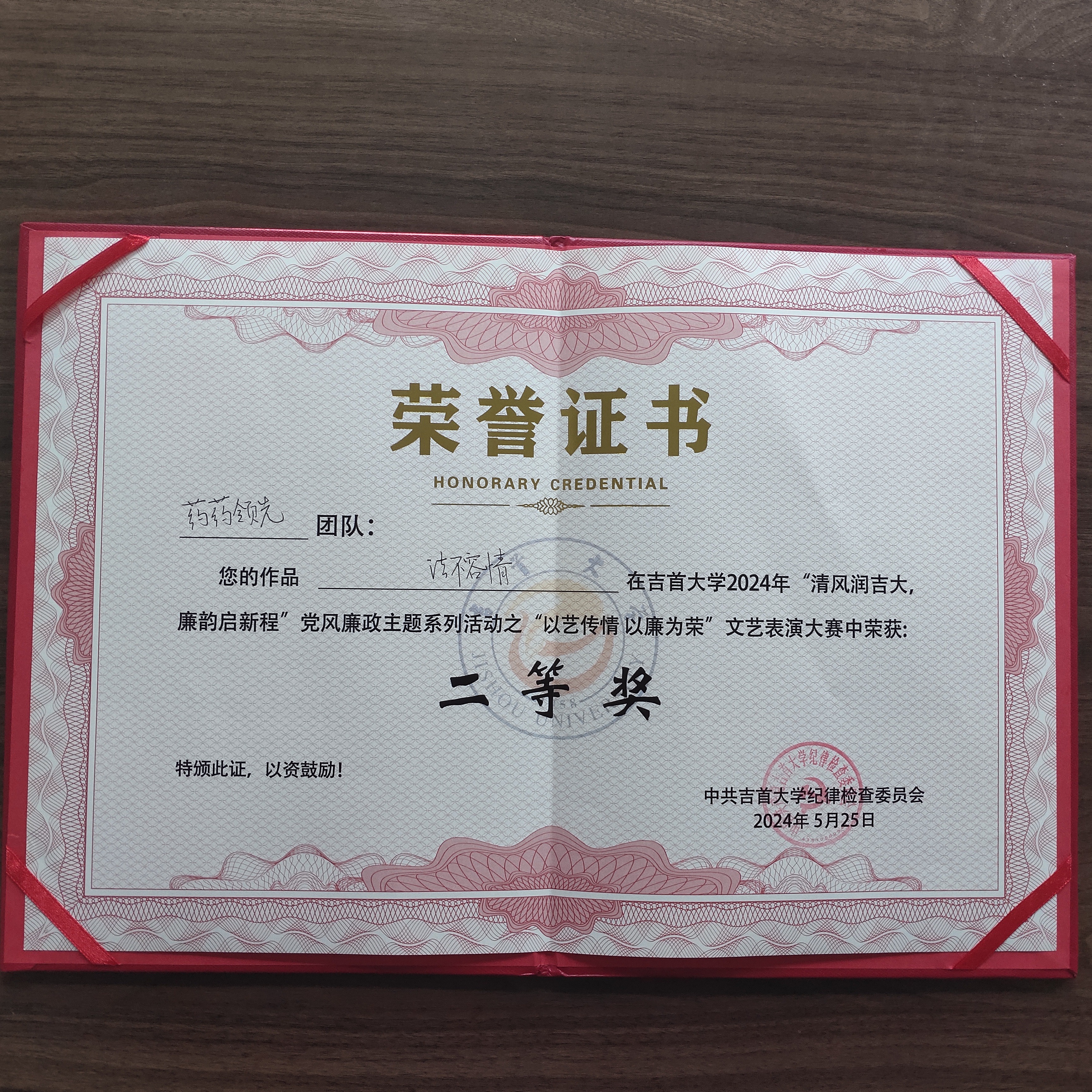 本网讯(通讯员 任美丽)5月25日下午,伟德国际BETVlCTOR1946“以艺传情,以廉为荣”文艺表演大赛于砂子坳校区模拟法庭举行。伟德BETVLCTOR1946“药药领先”队在比赛中脱颖而出,位居第三,荣获二等奖,同时学院也获得了优秀组织奖。