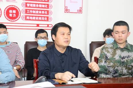 王江生向阿卜杜拉·阿布力孜入伍表示祝贺,向在座同学介绍了阿卜杜拉·阿布力孜的学习、思想情况,号召大家向阿卜杜拉·阿布力孜同学学习,在自己热爱的领域、在祖国需要的地方建功立业,并赠送亲笔寄语的笔记本,希望他“鹰击长空,保家卫国”。
