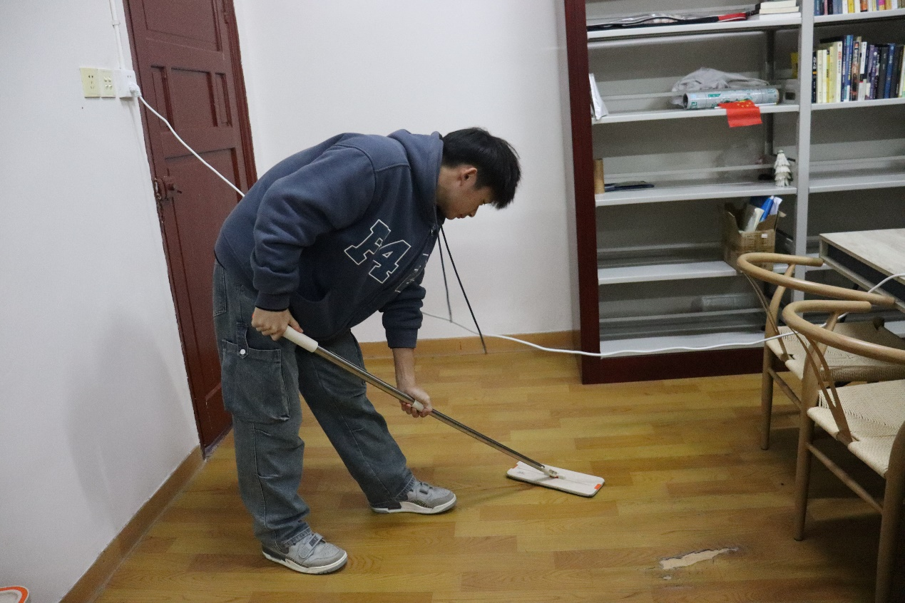 志愿者们分为A、B两组,每天对伟德BETVLCTOR1946员工工作办公室、党员活动室、会议室、图书阅览室进行打扫。此外,每周日全体志愿者还进行伟德BETVLCTOR1946办公楼的大扫除活动。志愿者们分工明确、干劲十足,给老师和同学们创造了一个干净整洁的工作、学习环境。