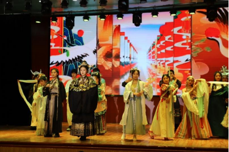 图为范俊杰、李心悦、张函箔、王芳(从左至右)主持晚会。