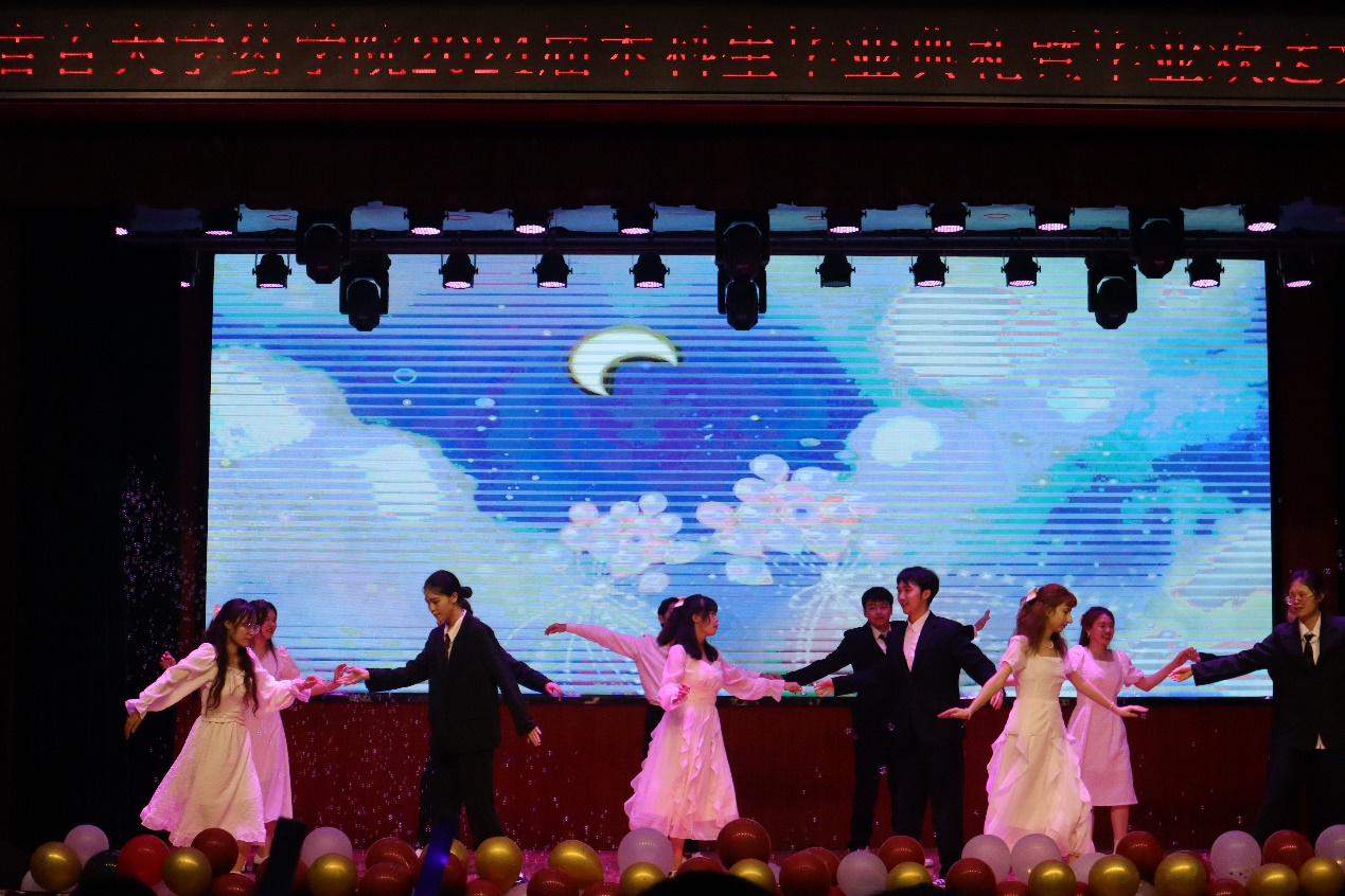 毕业典礼结束后,毕业欢送文艺晚会在热烈的掌声中缓缓拉开帷幕,悠扬动听的歌曲,轻盈优美的舞姿,惟妙惟肖的小品,精彩纷呈的魔术表演,让现场的氛围变得十分热闹与温馨,学弟学妹们用精彩的表演传递对学长学姐们的美好祝福。