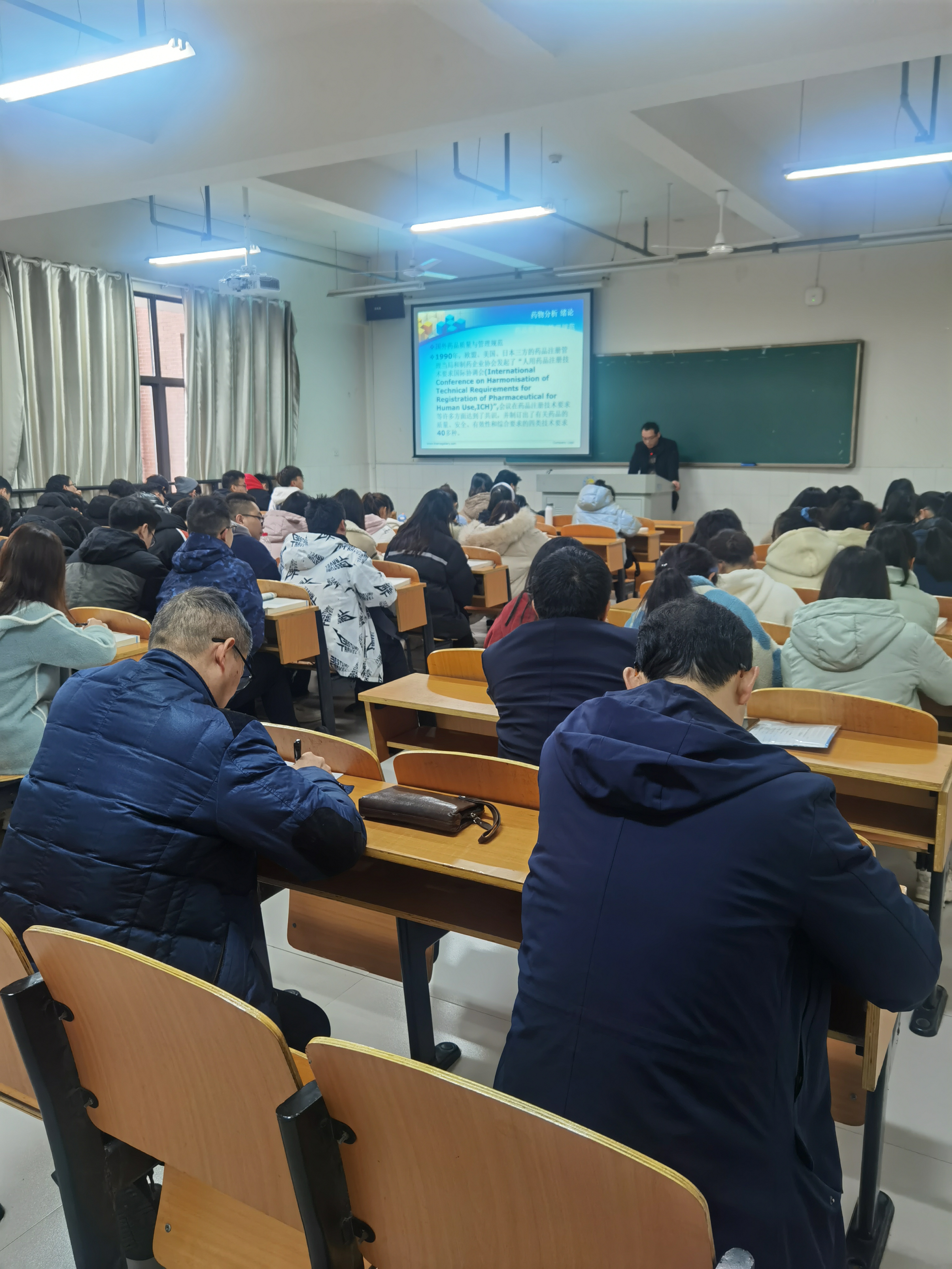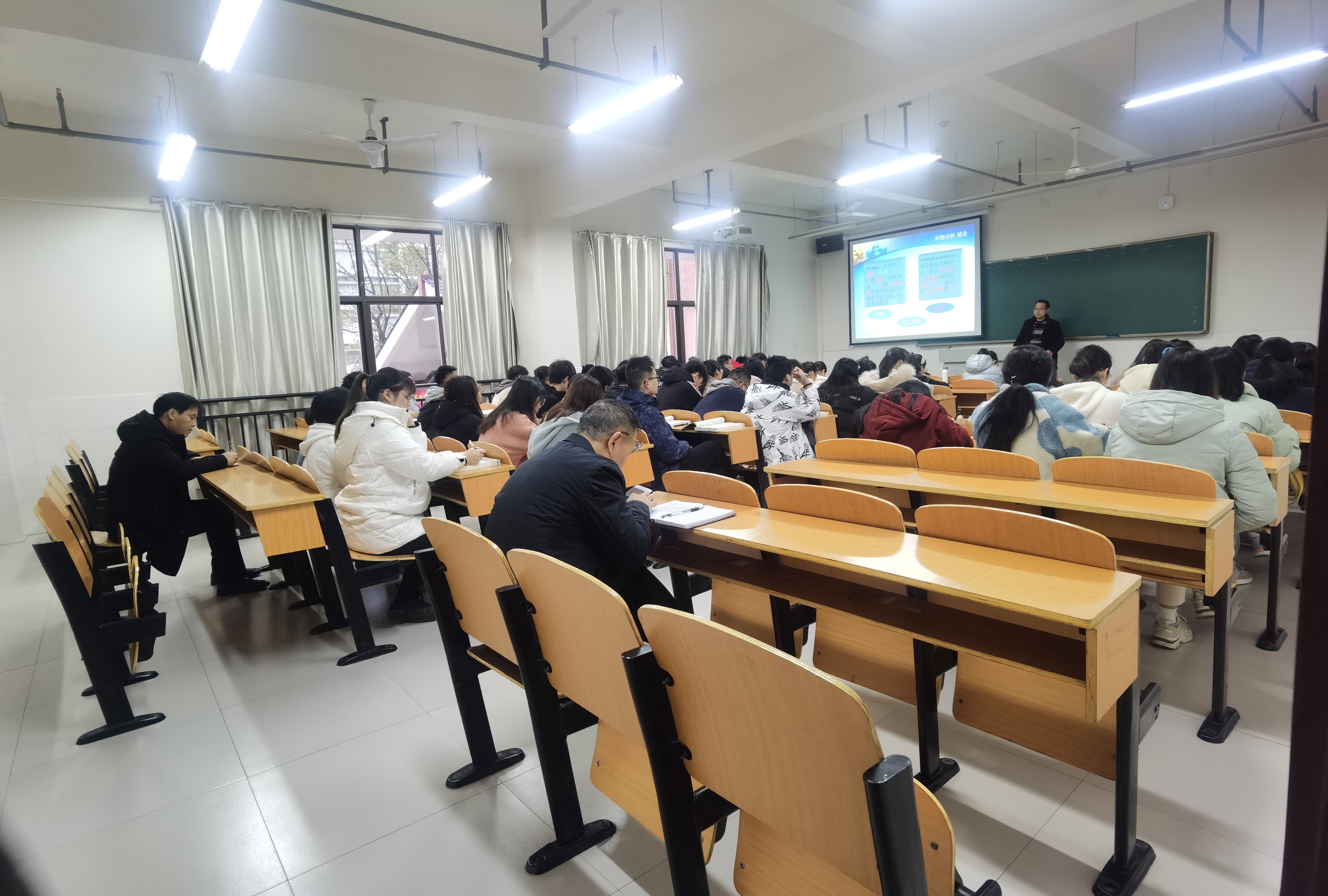 本网讯 3月2日,新学期开学第一天,龙先琼副董事长在教务处罗家顺副处长陪同下,深入大田湾校区进行教学检查,并在伟德BETVLCTOR1946全体领导的陪同下到2402教室听了赵东亮老师的第一堂课。