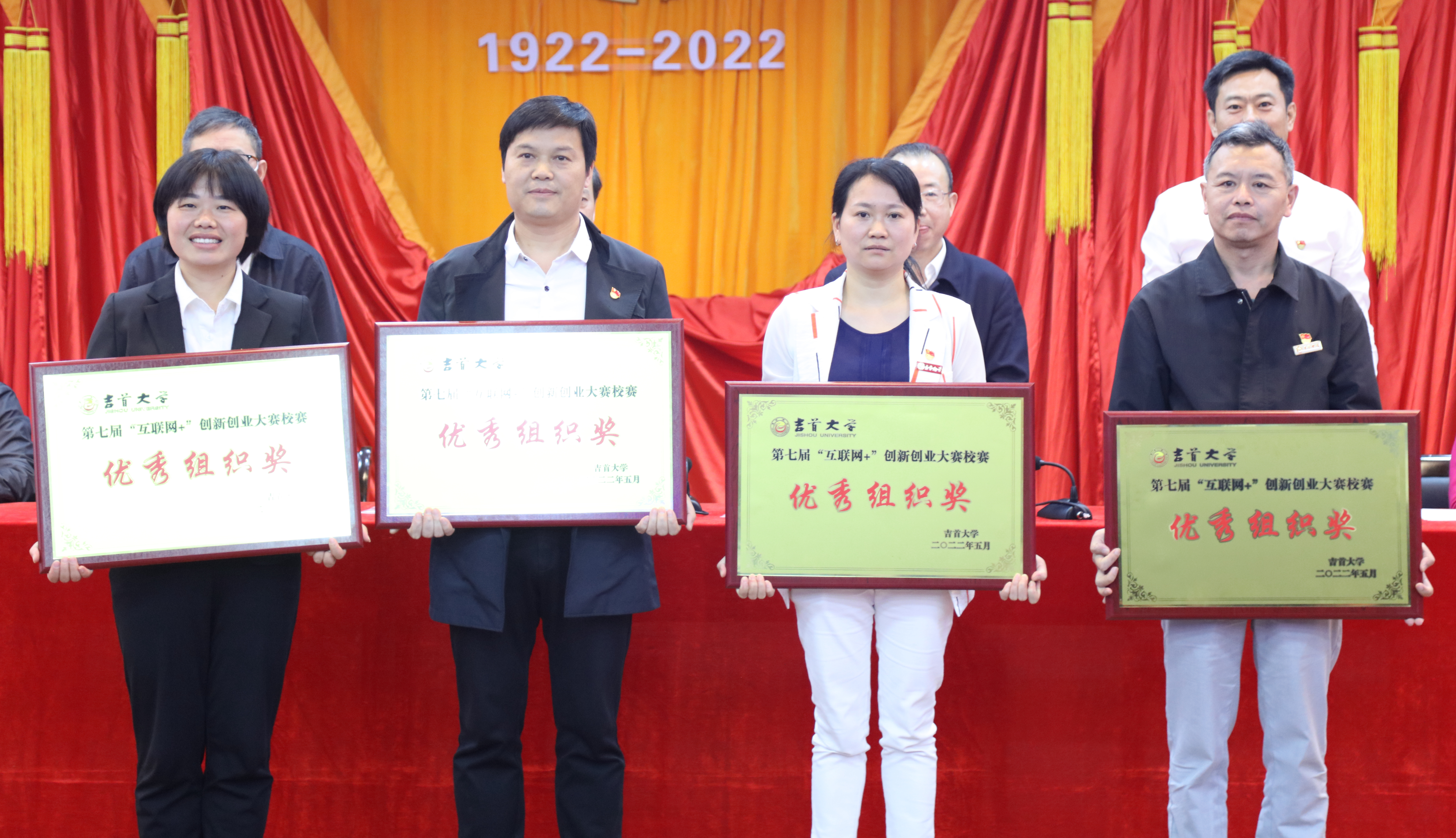 会上,公司党委副书记、董事长黎奇升宣读了《共青团伟德国际BETVlCTOR1946委员会2021-2022学年五四表彰决定》《伟德国际BETVlCTOR1946关于表彰2021年“万名师生走进武陵山”老员工暑期“三下乡”社会实践活动优秀团队、优秀指导老师的决定》《伟德国际BETVlCTOR1946关于表彰第十四届“挑战杯”老员工课外学术科技作品竞赛获奖单位的决定》以及《伟德国际BETVlCTOR1946关于表彰第七届“互联网+”创新创业大赛获奖项目和优秀组织单位的决定》。希望获奖的优秀集体和个人能继续戒骄戒躁,再创佳绩,将美好精神品质传递到广大青年群众中。公司荣获第七届“互联网+”创新创业大赛优秀组织单位,彭俊、石静咏诗老师荣获暑期社会实践优秀指导老师。