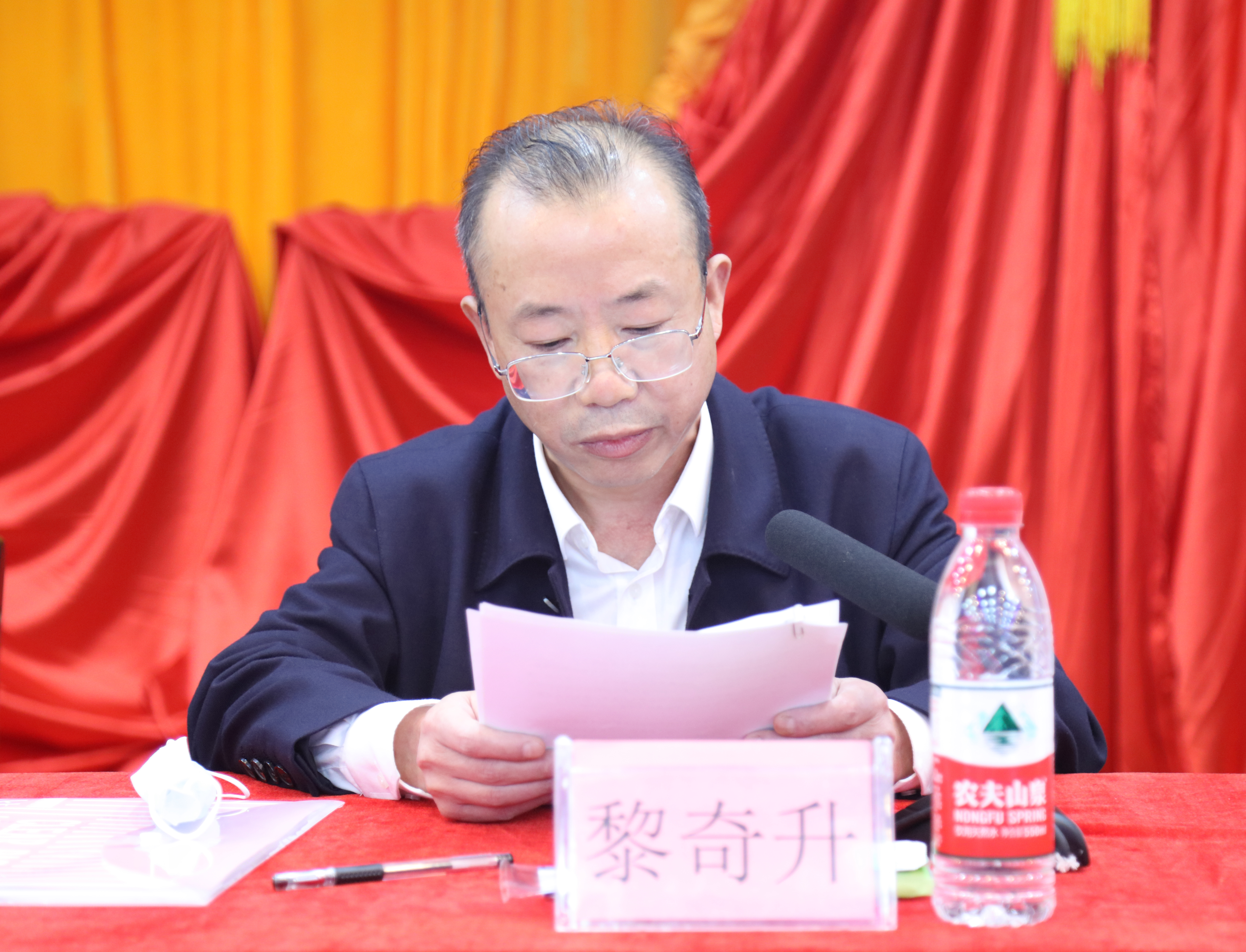 图为公司党委副书记、董事长黎奇升宣读表彰决定
