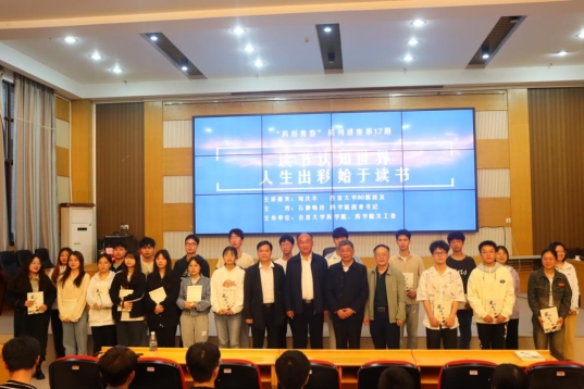 图为宛庆丰开展“读书认知世界,人生出彩始于读书”主题讲座