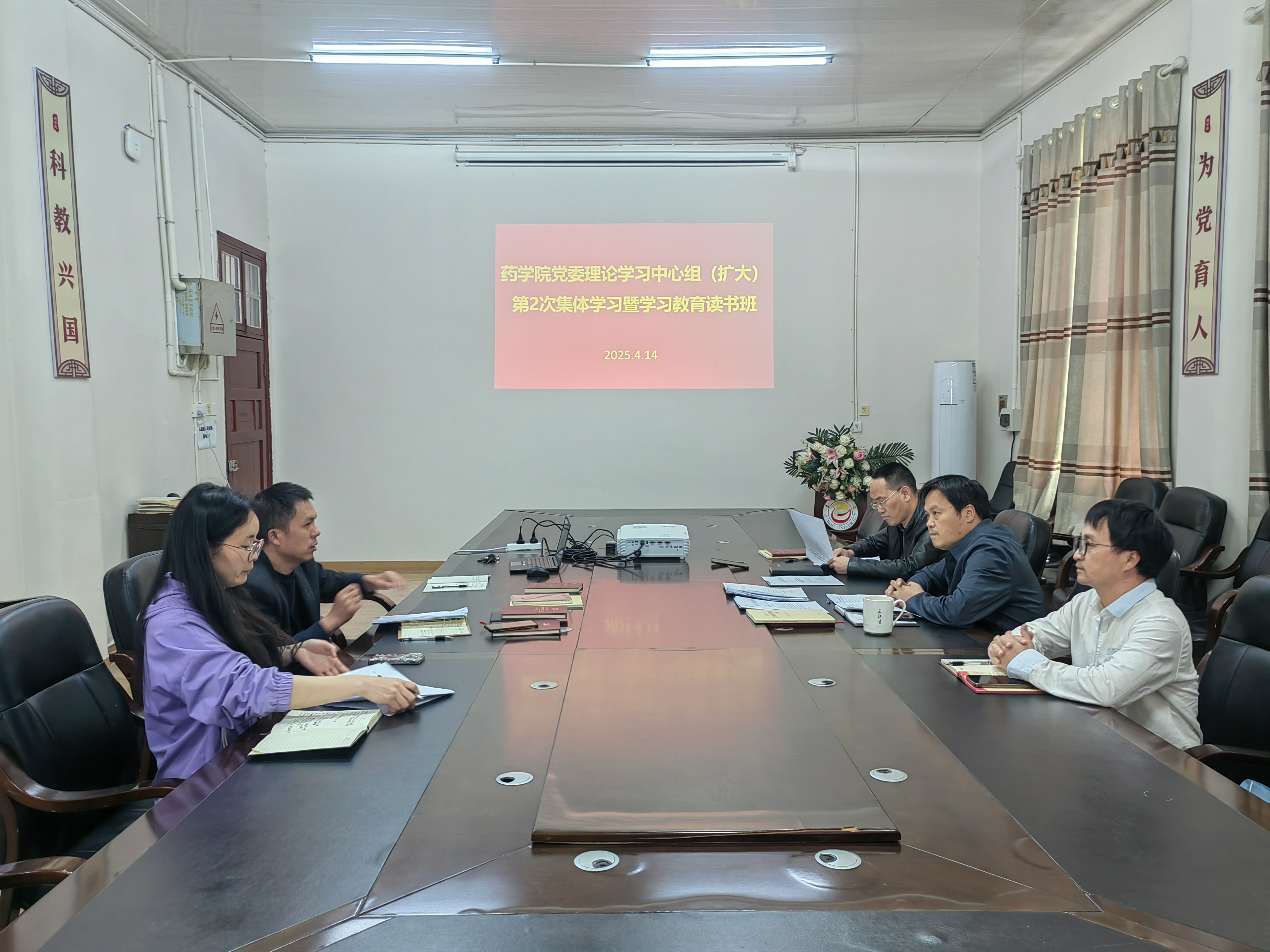 本网讯(潘金凤)4月14日上午伟德BETVLCTOR1946在会议室举行理论学习中心组(扩大)2025年第2次集体学习暨学习教育读书班,院领导班子、各支部书记参会,党委书记王江生主持学习活动。