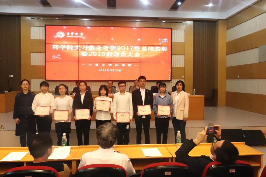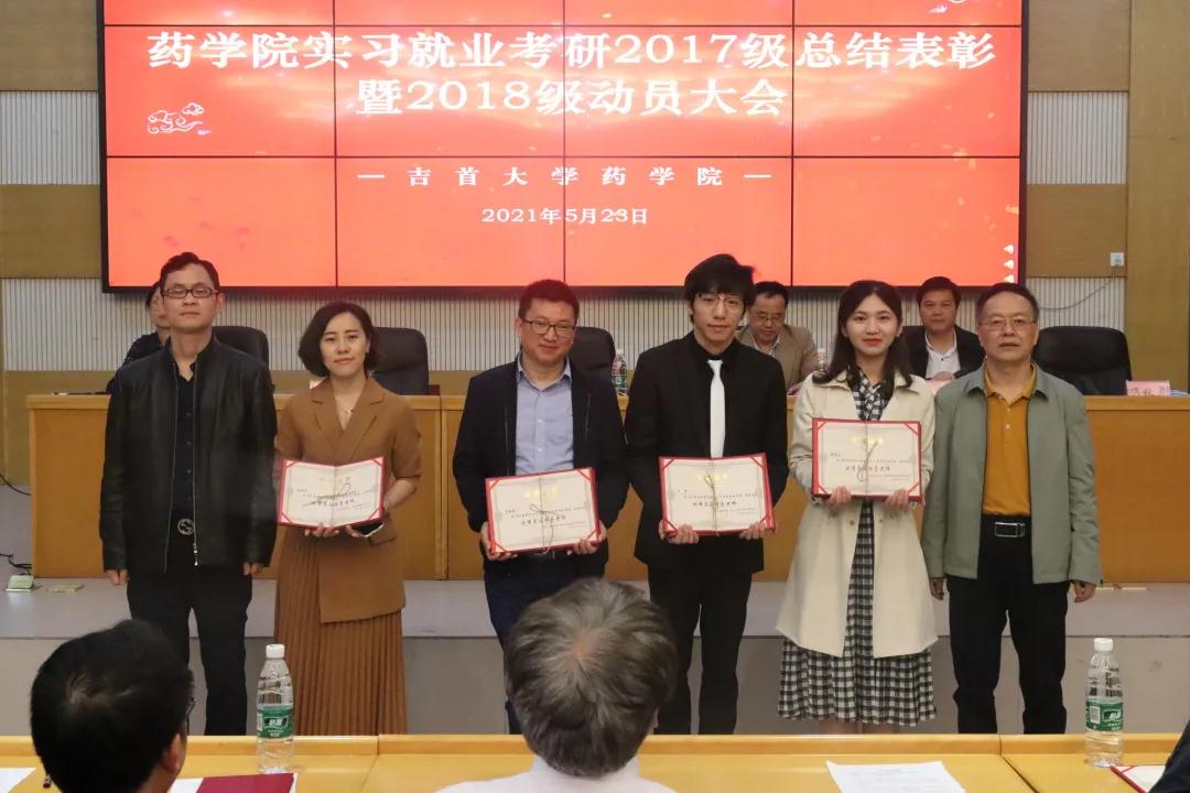 本网讯:(通讯员 吕慧婷)为全面总结2017级员工实施“实习就业融合模式”经验,表彰一批将就业与实习结合较好的优秀实习生、优秀指导老师,总结考研成绩经验,提升考研效果,进一步改进和高效推进“实习就业融合模式”,提早部署和启动2018级专业实习就业,同时全面巩固、扩大和深化院企合作,5月23日上午10:00,伟德BETVLCTOR1946实习就业考研2017级总结表彰暨2018级动员大会于预科楼609报告厅举行,人才招聘处副处长向军、经理陈功锡、公司党委副书记王江生、副经理李先辉、药学系主任盛益华、制药工程系主任冯秋菊、学工办彭俊、各企业代表、立项员工代表以及2017级与2018级全体员工参加本次会议。会议由王江生主持。