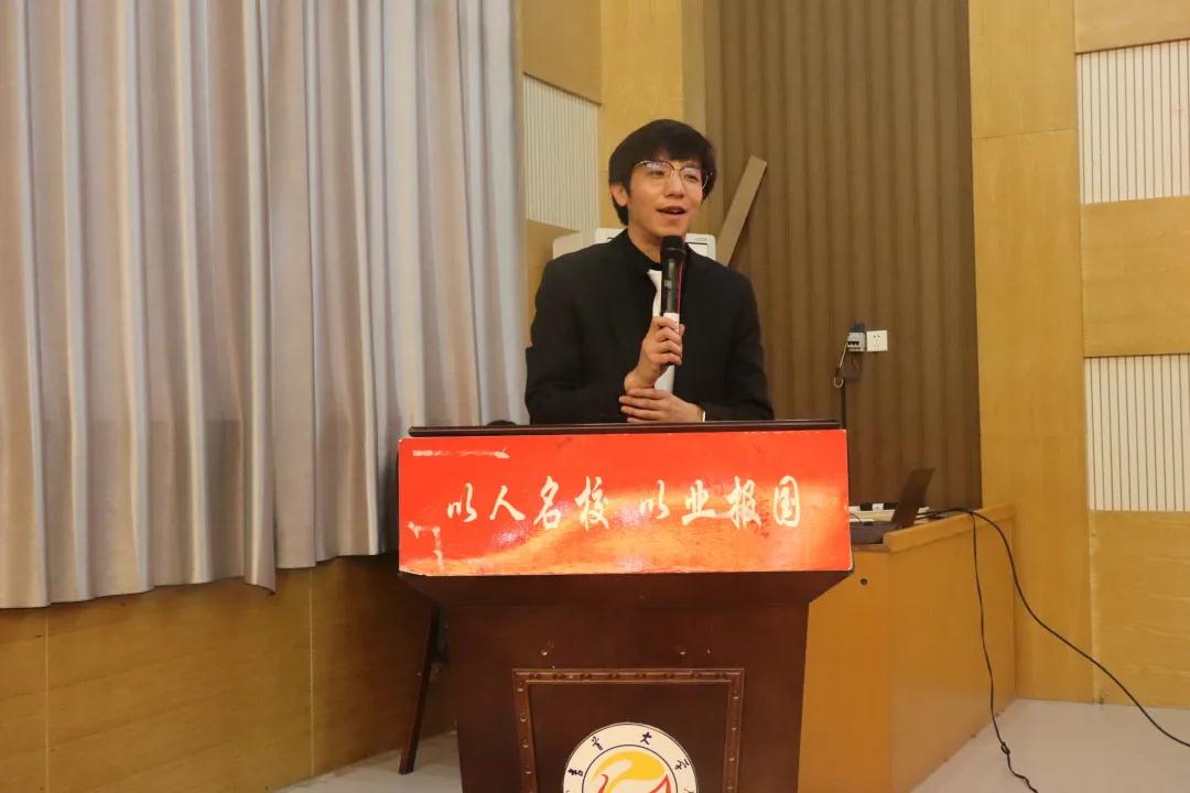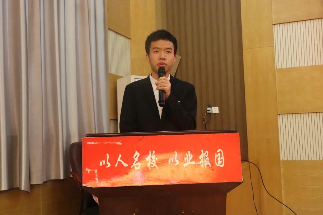 紧接着,立项员工代表 2019 级制药工程专业匡勇斌发言,讲述自身的科研创新成就,并对立项课题研究进度作出规划。
