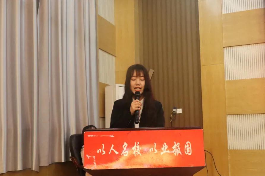 图为 获奖员工代表 2017 级制药工程班田荟发言