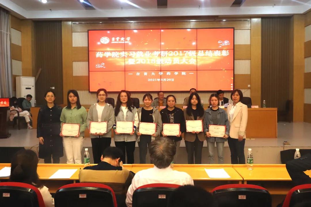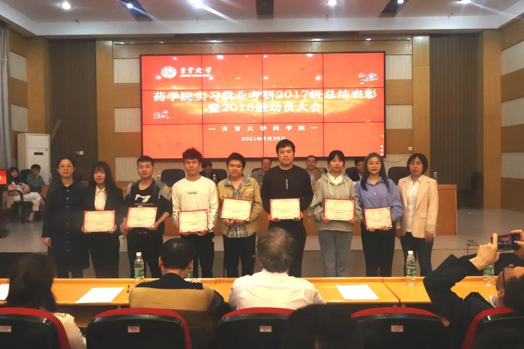 会后,人才招聘处副处长向军、经理陈功锡、公司党委副书记王江生、副经理李先辉、药学系主任盛益华、制药工程系主任冯秋菊、各企业代表、立项员工代表及获奖员工代表合影留念。本次表彰及动员大会对优秀实习生、优秀指导老师进行了表彰,总结了2017级员工实施“实习就业融合模式”经验,充分调动了2018级员工专业实习积极性,同时也进一步巩固、扩大和深化了院企合作,为同学们实现精准就业奠定了基础。