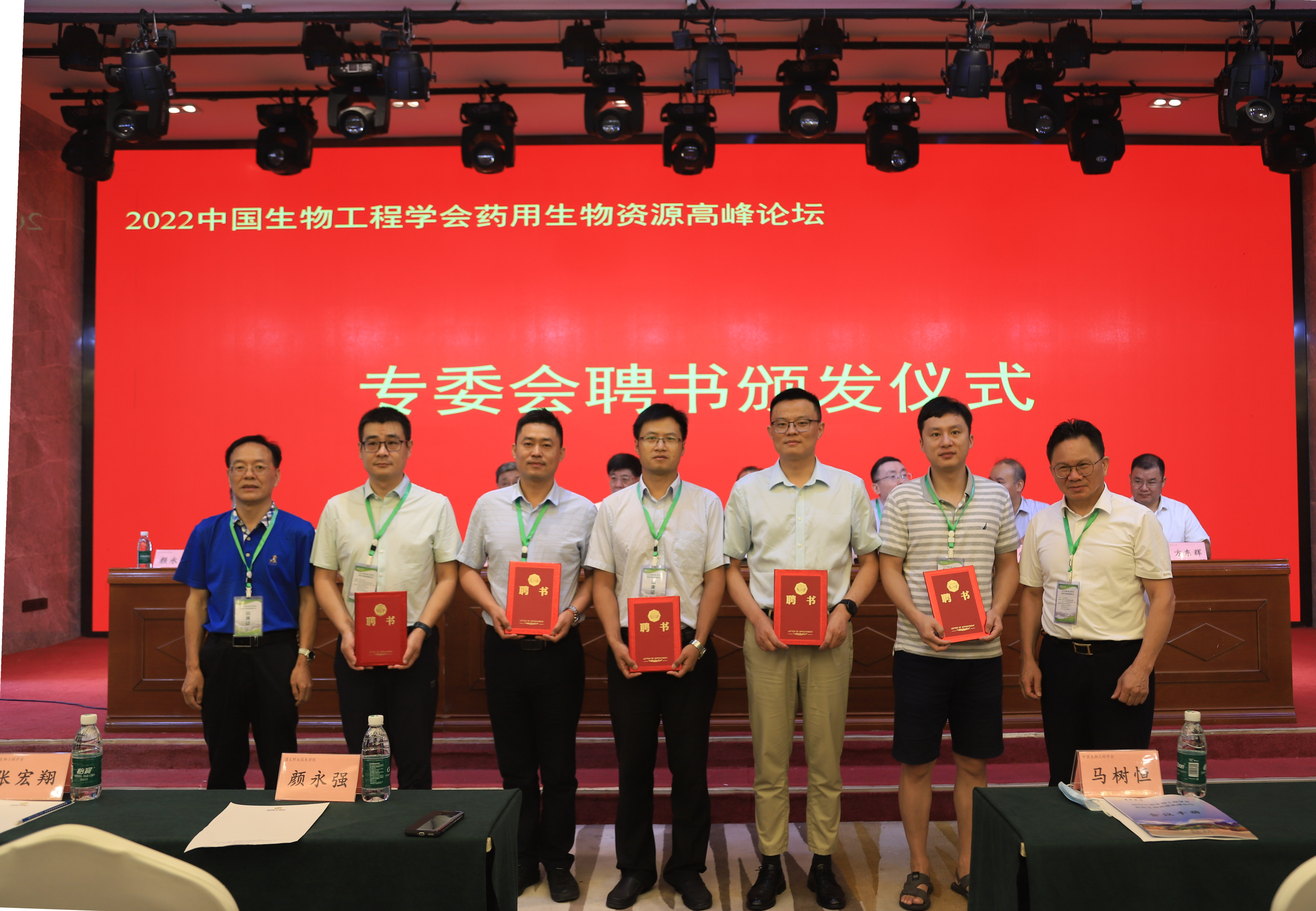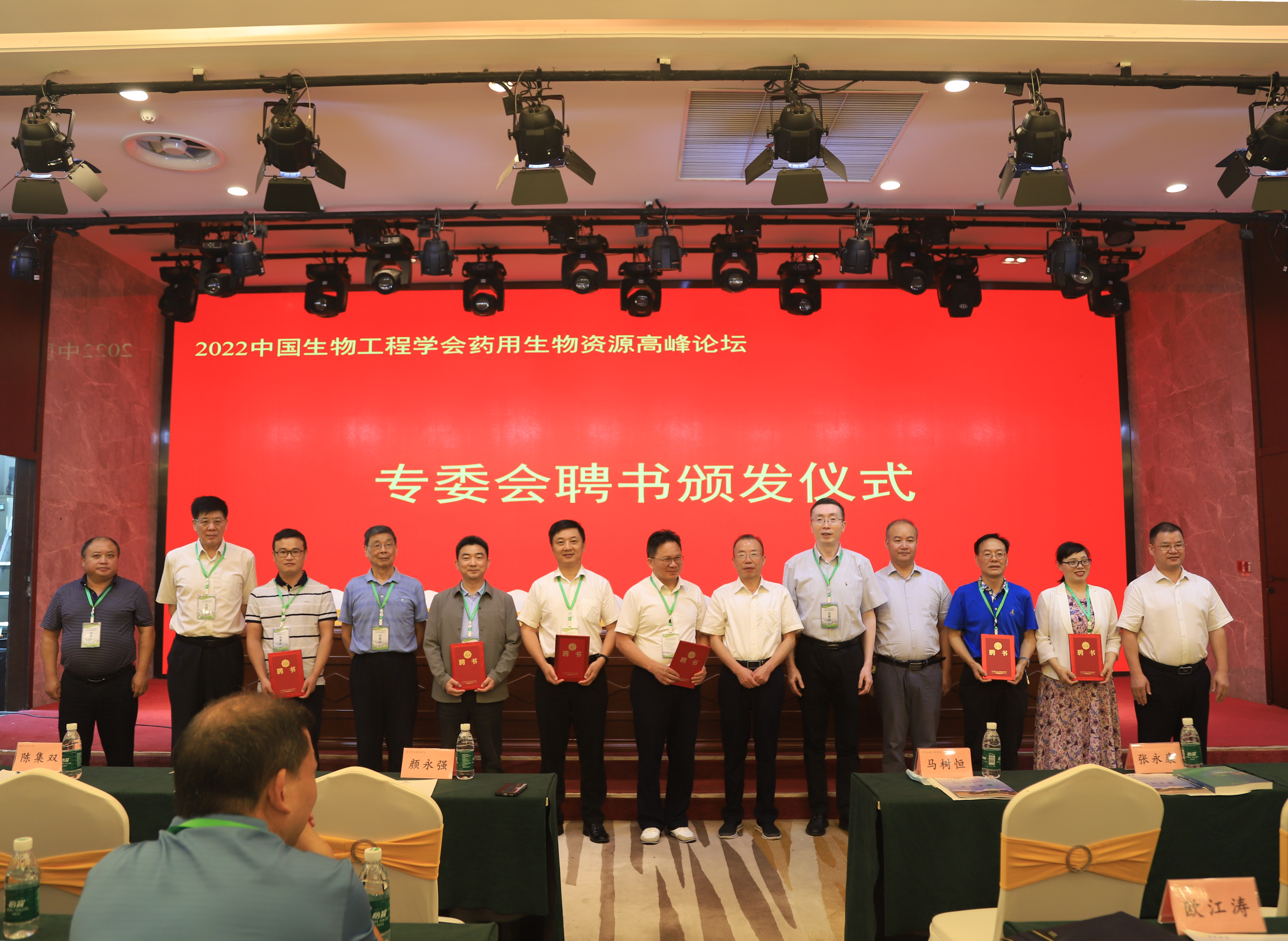 随后举行了专委会聘书颁发仪式,主席台全体领导代表中国生物工程学会为到场的11位专家颁发生物资源专业委员会主任、副主任和委员聘书。